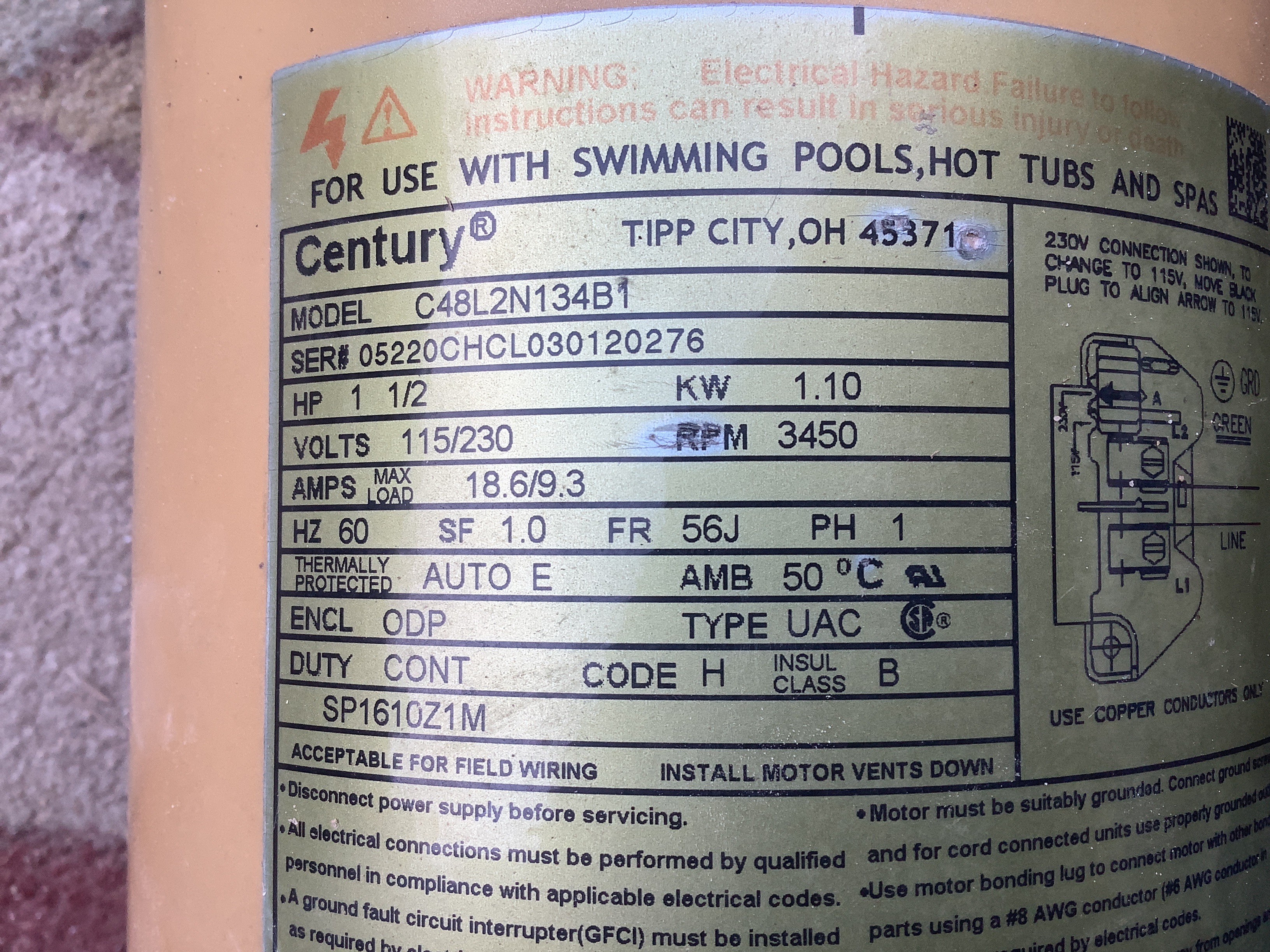 I Ruined The Cord To My Hayward 1 5hp Dual Speed Super Pump Hayward Sp1610x152s Details Below R Swimmingpools